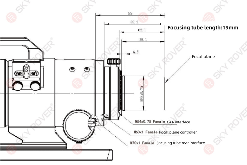 The end of focusing tube is with M70x1 thread; M48x0.75 Female