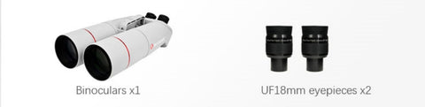 Factory configuration: Binoculars x1; UF18mm ultra flat-field eyepiece x2; Transport carton.